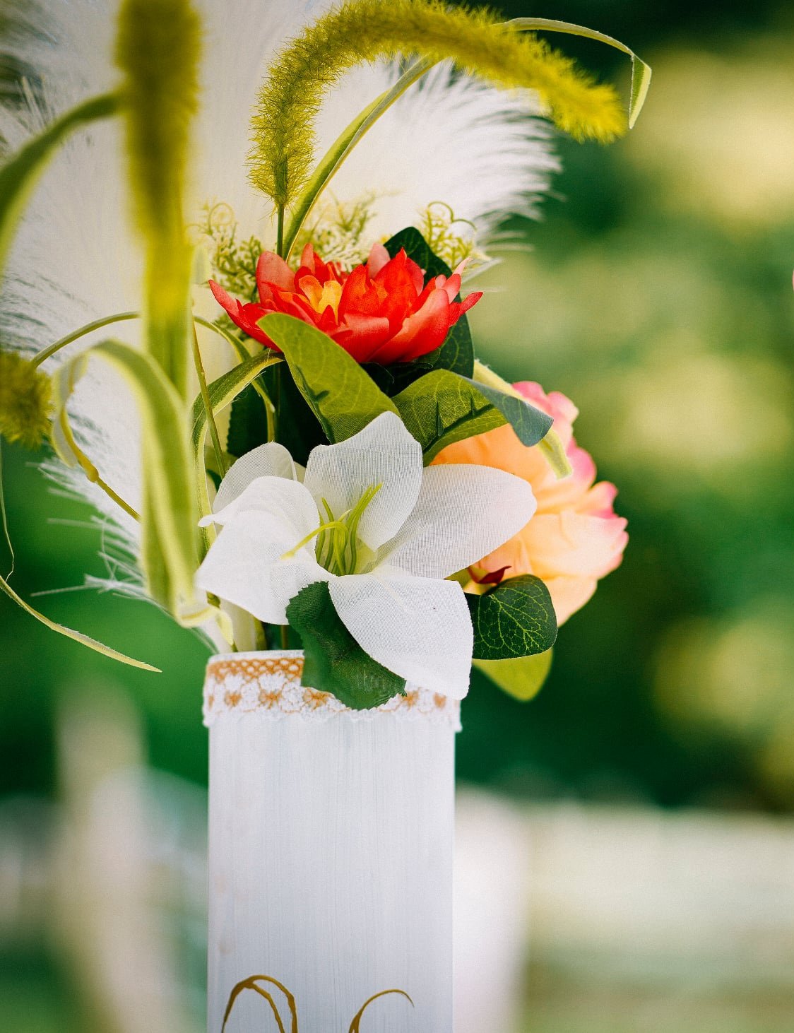Handmade centerpieces with artificial flowers for smaller events